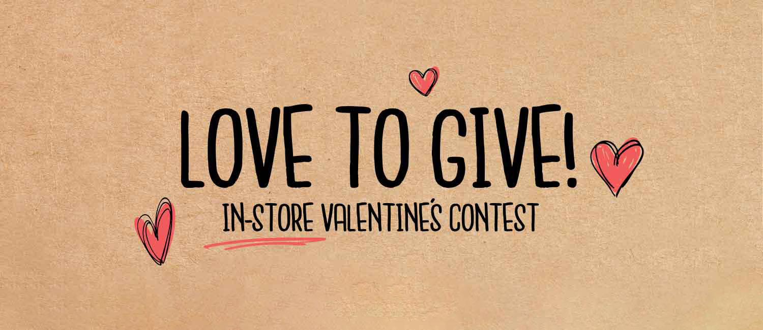 Valentine’s Day is the perfect excuse to treat yourself, share a little love, and enjoy something fun, and we’re celebrating with two in-store Valentine’s contests that are open to everyone. No purchase is necessary to enter, and both contests will be drawn on Valentine’s Day. Be sure to stop by and join the fun before then.